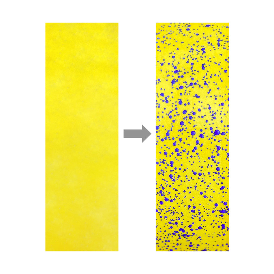 High-tech water sensitive paper to quickly and easily assess your pesticide spray coverage The yellow card instantly turns blue after contact with spray. Non-Smudging results once dry. Visualize and analyze spray coverage, droplet size and uniformity as well as identify off target application.